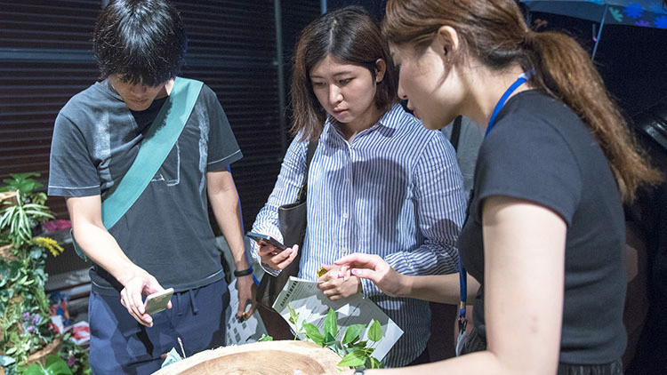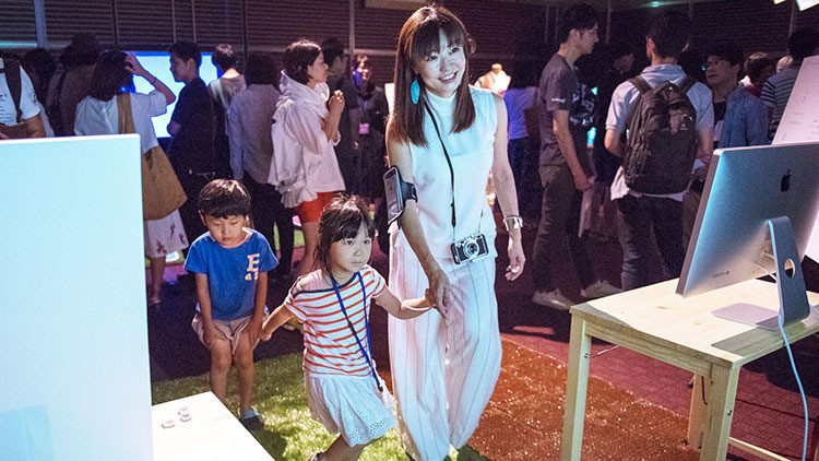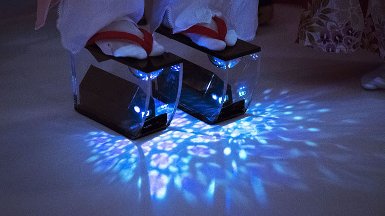 テーマは「日本を歩く」。テクノロジーの進化と共に、私たちが認識している現実と仮想の境は急激に曖昧になりつつあります。そのような世界認識の変化を踏まえ、最も基本的な身体行為である「歩く」ことのアップデートに、生徒たちは挑戦しました。 授業の初回は合宿を行い、東京チームは長野の野山を、京都チームは古都を実際に歩き、それぞれの環境が持つ魅力を発見・抽出することからスタートしました。授業は毎回、東京と京都で同じ日時に開催し、中継でつなぎました。物理的な距離を超えて、お互いのアイデアや技術力に刺激を受け、切磋琢磨し合う姿が見られ、その様子は日本テレビSENSORSでも数回に渡って特集されました。