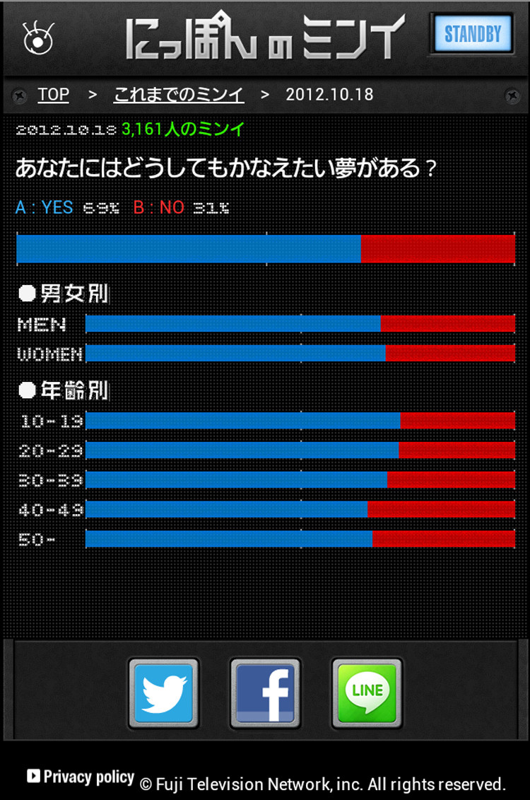 また番組終了後には性別、年齢ごとの結果も確認できるようにしました。