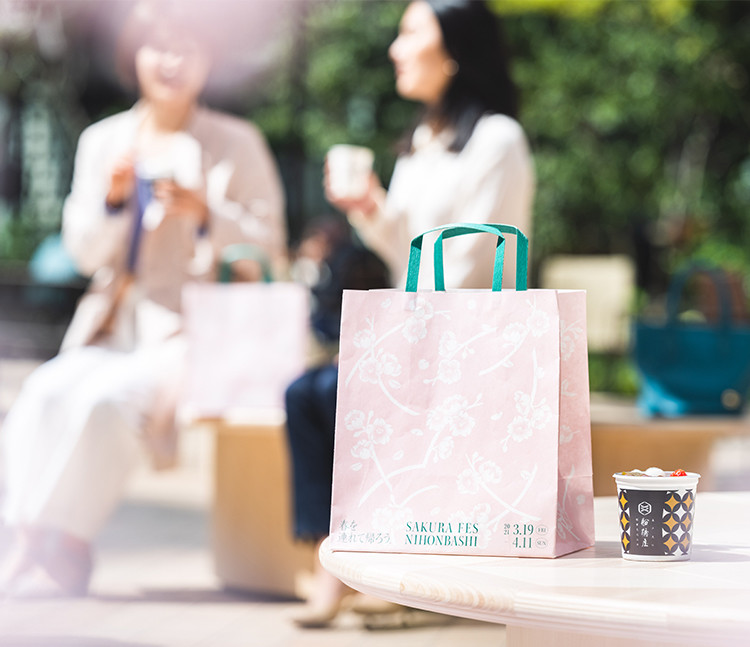 日本橋エリアの約150店舗が「桜」をテーマにしたこの春限定のテイクアウトメニューを販売する「桜テイクアウト」や、24店舗の「宴席の味と体験」を詰めた「日本橋 宴づつみ」。日本橋で働くオフィスワーカー向けに期間中の月曜日に販売されるコラボおむすび「日本橋 結びむすび」。各店舗が想いを込めて、春を連れて帰れるステキなメニューを多数用意しました。