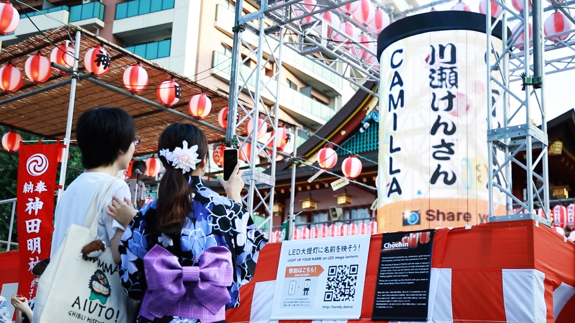 自分の名前の他にもメッセージや、好きなタレントやアニメキャラの名前など思い思いの言葉が提灯を彩り、今まで伝統的で代わり映えしなかった盆踊りをよりインタラクティブに『街の夏フェス』として参加したくなる仕組みを作りました。