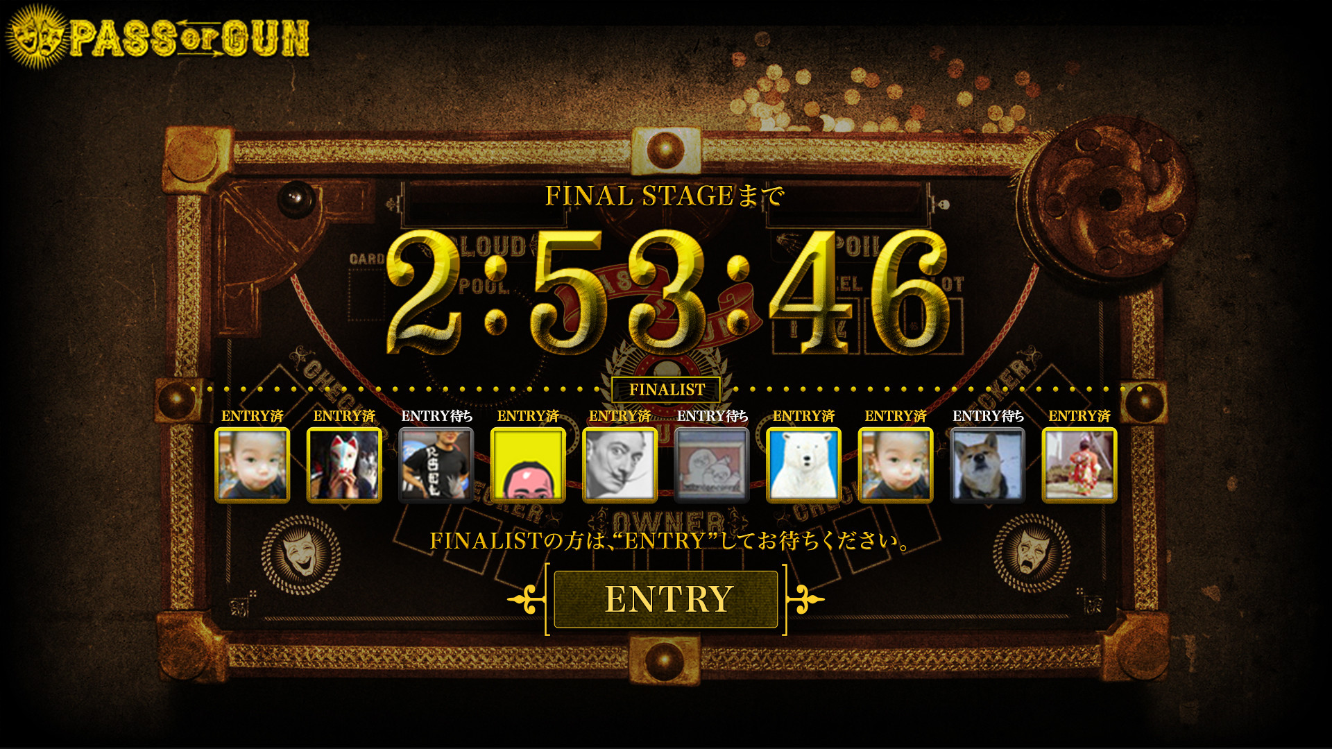 スマートフォンユーザー向けのパッケージサービス「auスマートパス」の利用者100万人突破を記念して、スマートフォンとPCから参加できる心理戦を勝ち抜くオンラインイベント『Pass or Gun』を開催しました。6/29から9日間予選を行い、上位10名が7/7の決勝戦に参加しました。サービス未加入のauユーザーに向けさらなるサービスの認知向上と加入促進を行うべく、カードカジノをモチーフにしたゲームの中に「クラウド」「セキュリティ」等サービスの内容を随所に盛り込み、サービスへの興味・理解にまでつながるようなコンテンツを目指しました。 500以上の映像の組み合わせによる展開と音声認識でゲームを進行できる仕掛けなど、観て楽しめるゲームになっていると思います。 /荒木千穂
